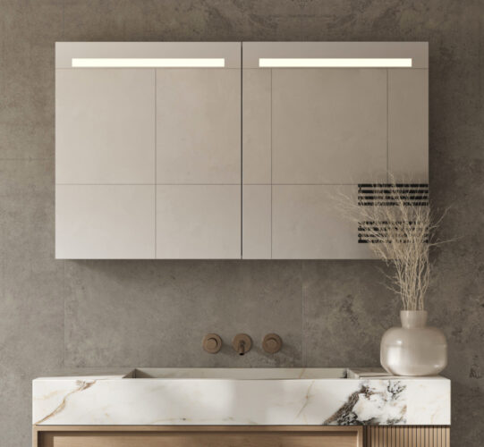 Deze fraaie aluminium spiegelkast is 120 cm breed en 70 cm hoog. De horizontale verlichting aan de bovenzijde van de deuren geeft veel omgevingslicht en daarnaast ook praktisch licht in het gezicht. Lees verder...