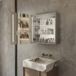 Naast de verlichting is ook de handige spiegelverwarming volledig in de deur geïntegreerd. Dankzij de spiegelverwarming ontstaat er geen condens na bv het douchen, ideaal! De verlichting en verwarming worden in- en uitgeschakeld middels een handbeweging langs de sensor die aan de onderzijde van de spiegelkast is gemonteerd.