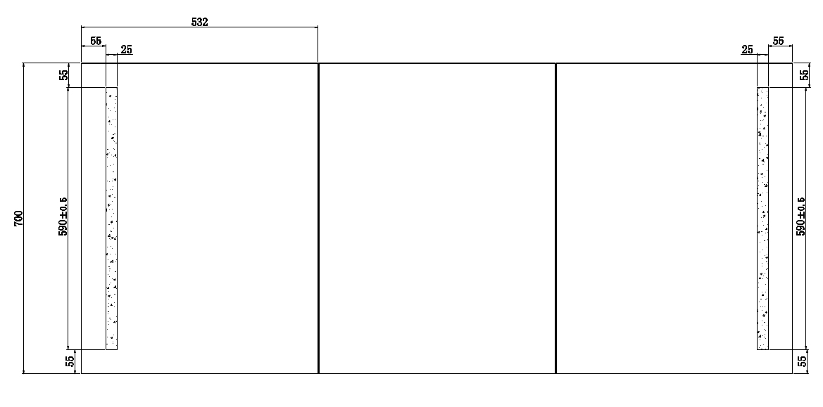Deze spiegelkast is 160 cm breed, 70 cm hoog en 14 cm diep.