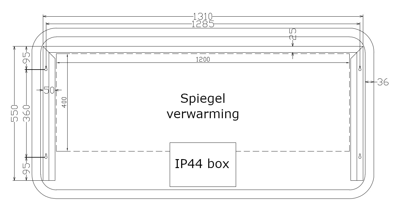 Spiegelverwarming Met het oog op gebruiksgemak beschikt deze spiegel met afgeronde hoeken over geïntegreerde spiegelverwarming. Deze handige extra functie zorgt ervoor dat je spiegel nooit meer beslaat!