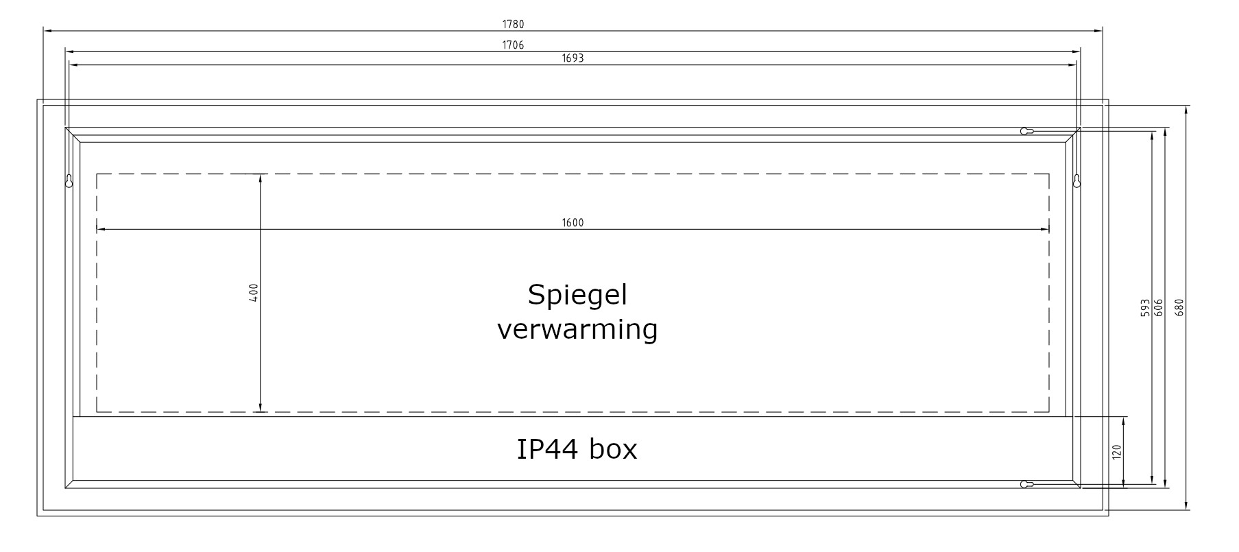 De touch schakelaar met handige dimfunctie is in het spiegelglas verwerkt. Hiermee wordt zowel de verlichting als de verwarming bediend.