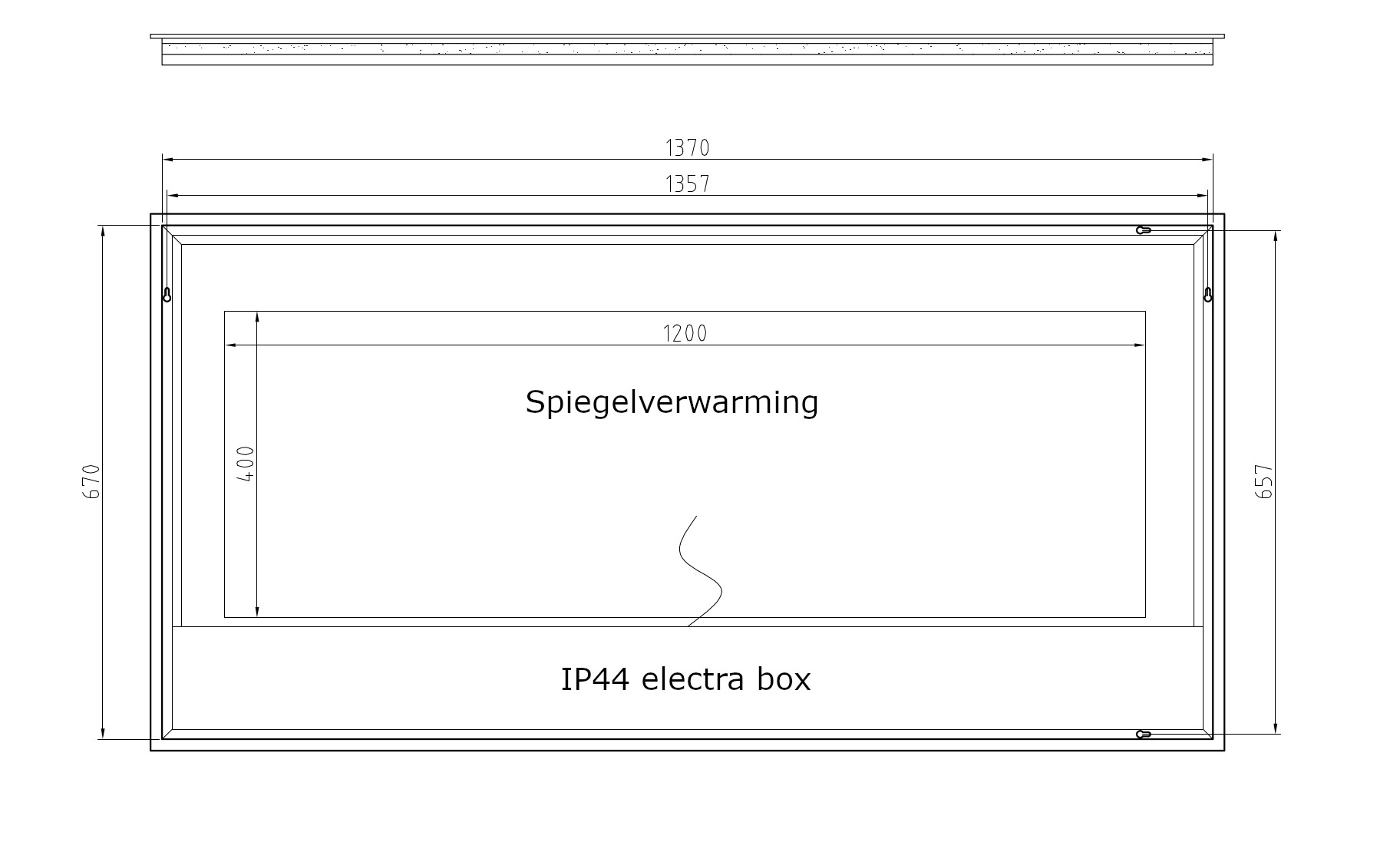 Inclusief 2 handige stopcontacten aan de linker en rechter zijde van de spiegel, netjes geïntegreerd in het aluminium achterframe. Deze kunnen gebruikt worden voor een föhn, electrische tandenborstel of scheerapparaat (uitsluitend platte stekker, max 1000W)