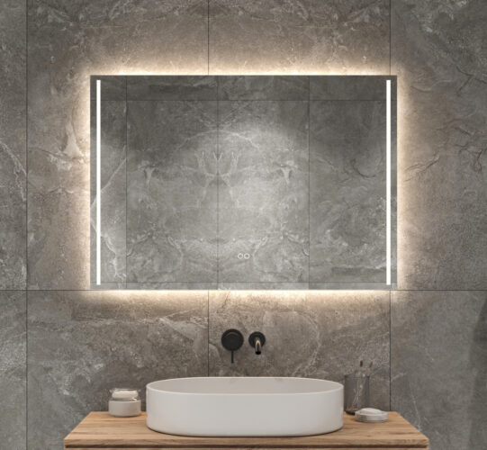 Stijlvolle en praktische badkamerspiegel met verlichting, spiegelverwarming en dubbele touch knop met handige dimfunctie en instelbare lichtkleur