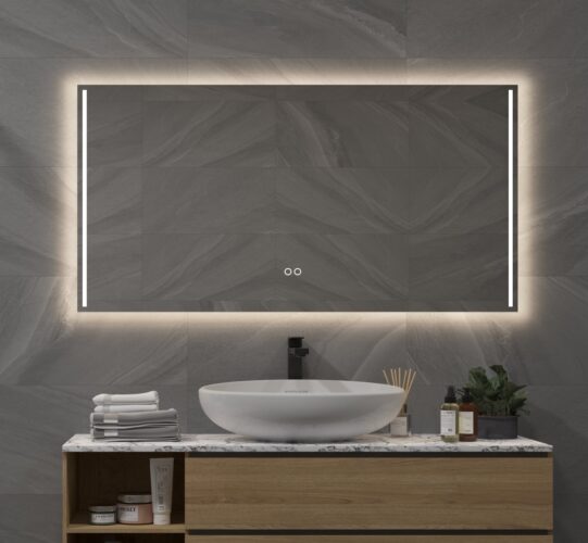 Stijlvolle en praktische badkamerspiegel met verlichting, spiegelverwarming en dubbele touch knop met handige dimfunctie en instelbare lichtkleur