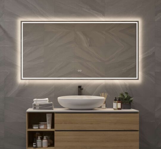 Fraaie badkamerspiegel met instelbare lichtkleur, handig!