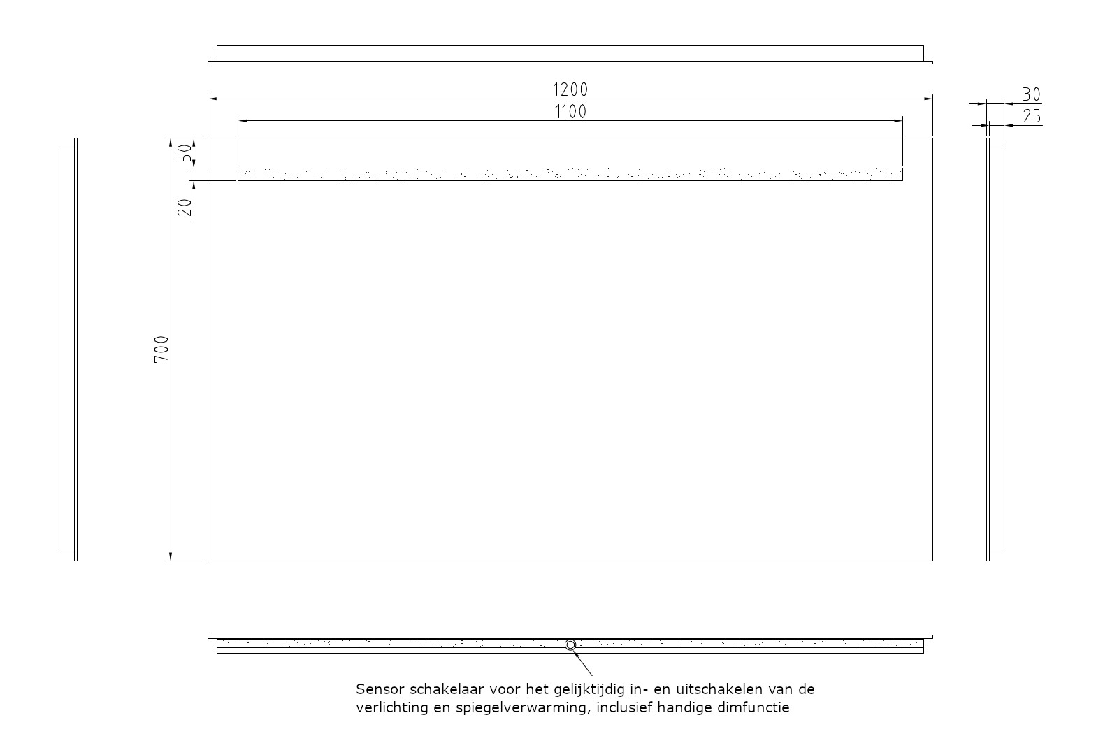 De handige sensor schakelaar bevindt zich gecentreerd onderaan de spiegel