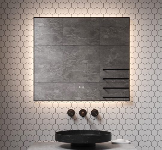 Luxe badkamer spiegel met mat zwart frame en instelbare lichtkleur