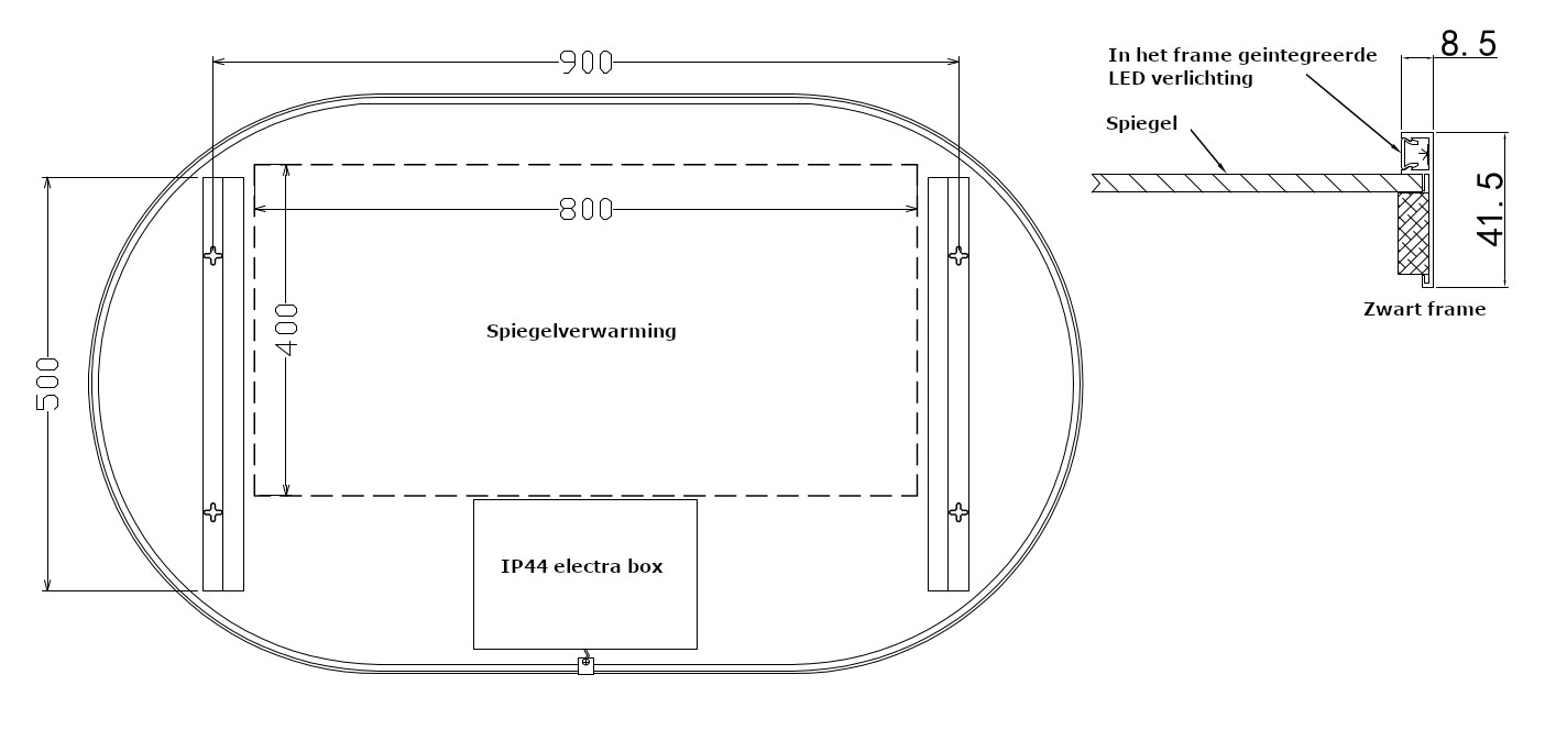 De afmetingen van deze ovale spiegel zijn 120 cm breed en 70 cm hoog. Naast geïntegreerde verlichting beschikt de spiegel tevens over spiegelverwarming en een touch schakelaar met dimfunctie en instelbare lichtkleur. Door de dimfunctie en de instelbare lichtkleur functie te gebruiken, creëer je eenvoudig de juiste sfeer in de badkamer!