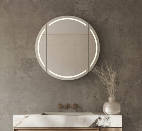 Op zoek naar een stijlvolle en praktische ronde badkamerspiegelkast met verlichting en spiegelverwarming? Kies dan voor deze ronde spiegelkast van aluminium met een diameter van 80 cm. Deze luxe badkamer spiegelkast is perfect voor iedereen die op zoek is naar een moderne, eigentijdse look gecombineerd met veel functionaliteiten en een hoog afwerkingsniveau. Lees verder...