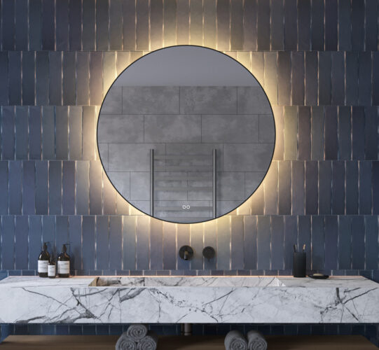 Stijlvolle ronde badkamerspiegel, uitgevoerd met een mooi afgewerkt, mat zwart frame, spiegelverwarming en instelbare lichtkleur. Lees verder...