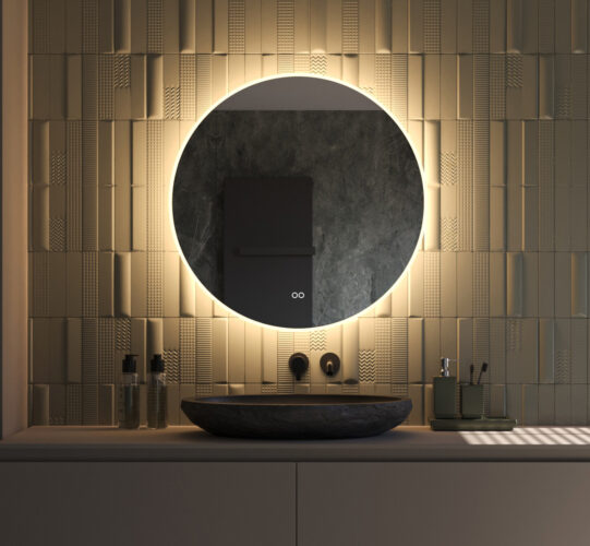 Deze fraaie ronde badkamer spiegel heeft een diameter van 80 cm. De dimbare verlichting schijnt zowel naar voren voor praktisch licht in het gezicht als sfeervol over de wand. Lees verder...