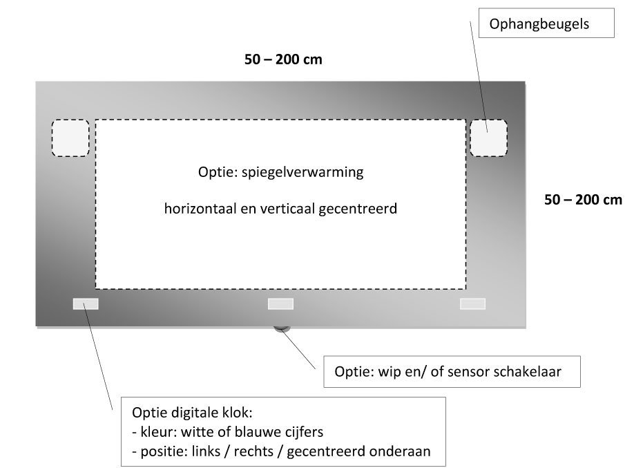 Maak je spiegel écht uniek! Geef hem de finishing touch met extra opties die passen bij jouw stijl en behoeften.